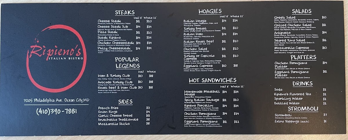 When you step into Ripieno's Italian Bistro, located at 3205 Coastal Hwy in Ocean City, MD, you're in for a treat. Their Ripieno's Italian Bistro Menu offers a delightful mix of traditional Italian flavors with a modern twist. Whether you're craving a rich pasta dish, a perfectly cooked pizza, or something lighter like a fresh salad, there's something for every taste. The ingredients are always fresh, and each dish is crafted with care, ensuring a memorable dining experience. From the first bite to the last, you'll find the food comforting, full of flavor, and made with passion. Whether you're here for a casual meal with friends or a cozy dinner with family, the menu has the perfect option for any occasion.